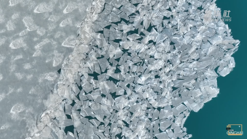青海湖开湖分两种,“文开”和“武开”,都是高原独有的样子。“文开”是慢慢地融,冰面一点点变薄、裂开,悄无声息就成了碧波。