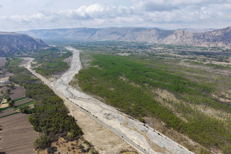 这是4月13日拍摄的贵德县河西镇才堂村景色(无人机照片)。新华社记者 张龙 摄